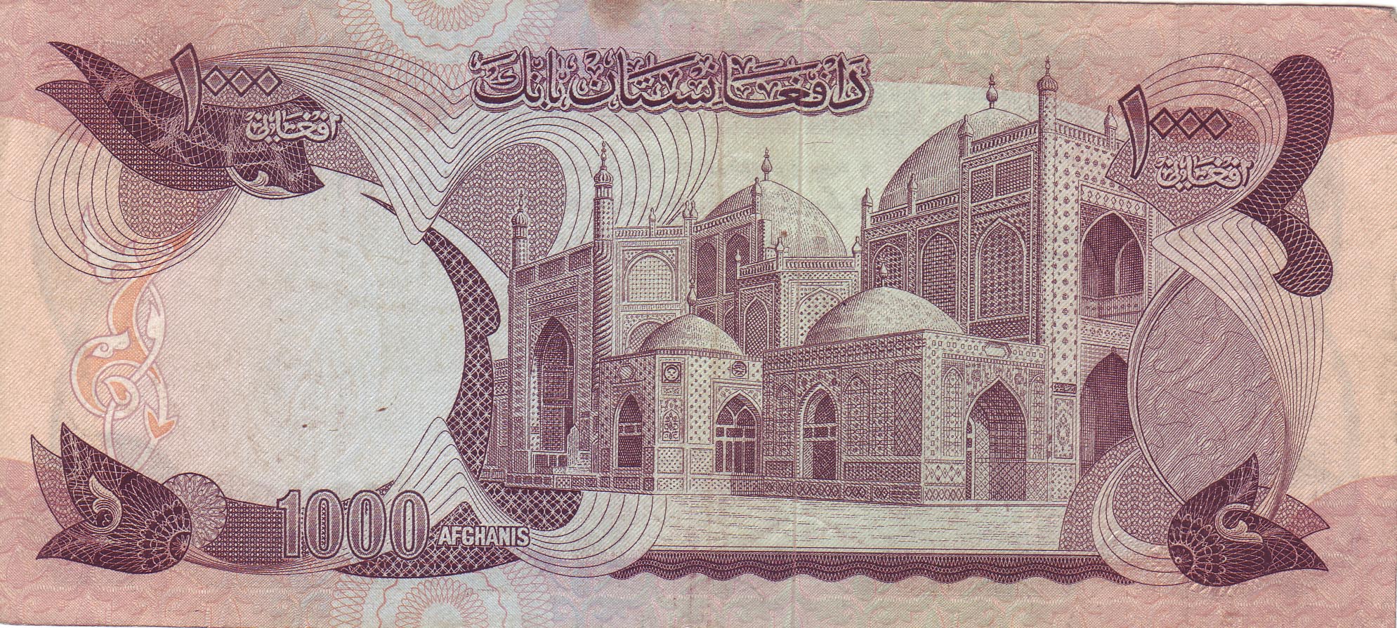 ![]() 1000 Afghani (vordere Seite) Motiv: Grosse Ali-Moschee, Mazar-i-Sharif |