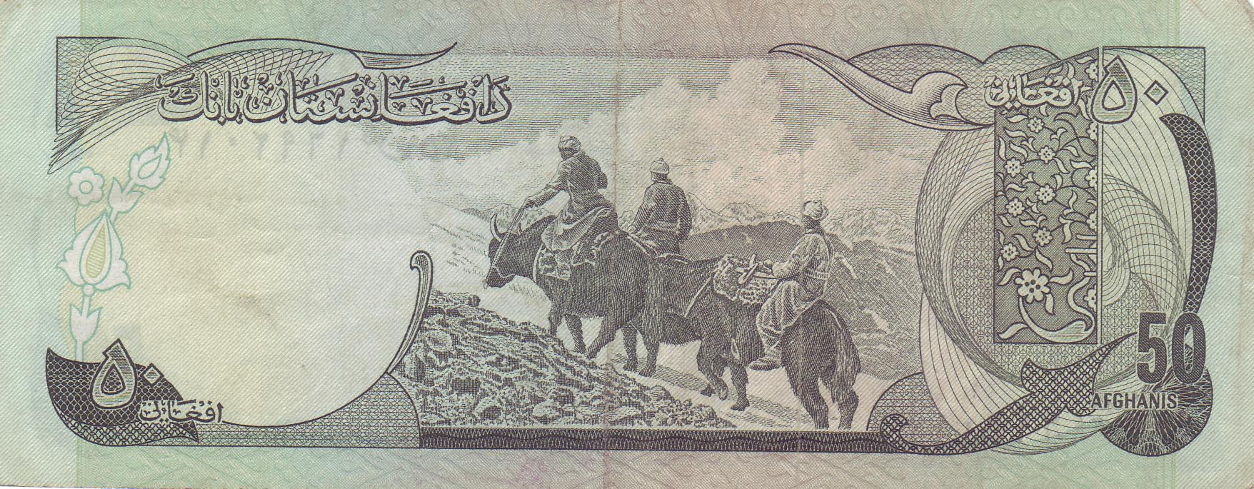![]() 50 Afghani (Rückseiteeite) Motiv: Wakhanhöhen, Pamirgebirge, Badakhshan |