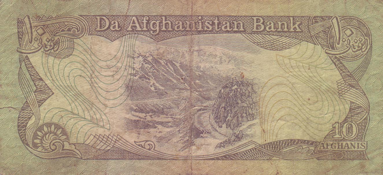 ![]() 10 Afghani (Rückseite) Motiv: Berglandschaft Nord-Afghanistan |