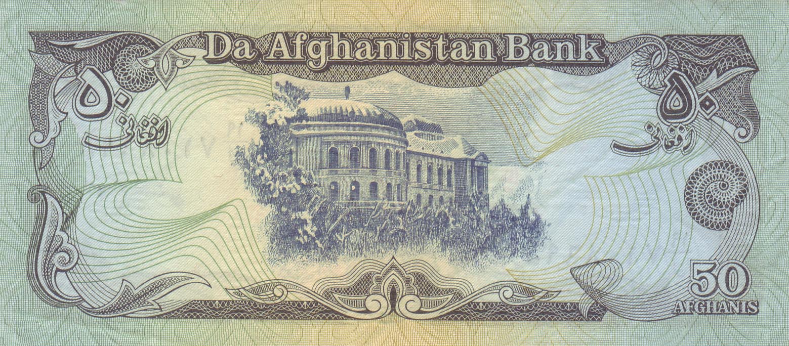 ![]() 50 Afghani (Rückseiteeite) Motiv: Königspalast(Arg), Kabul |