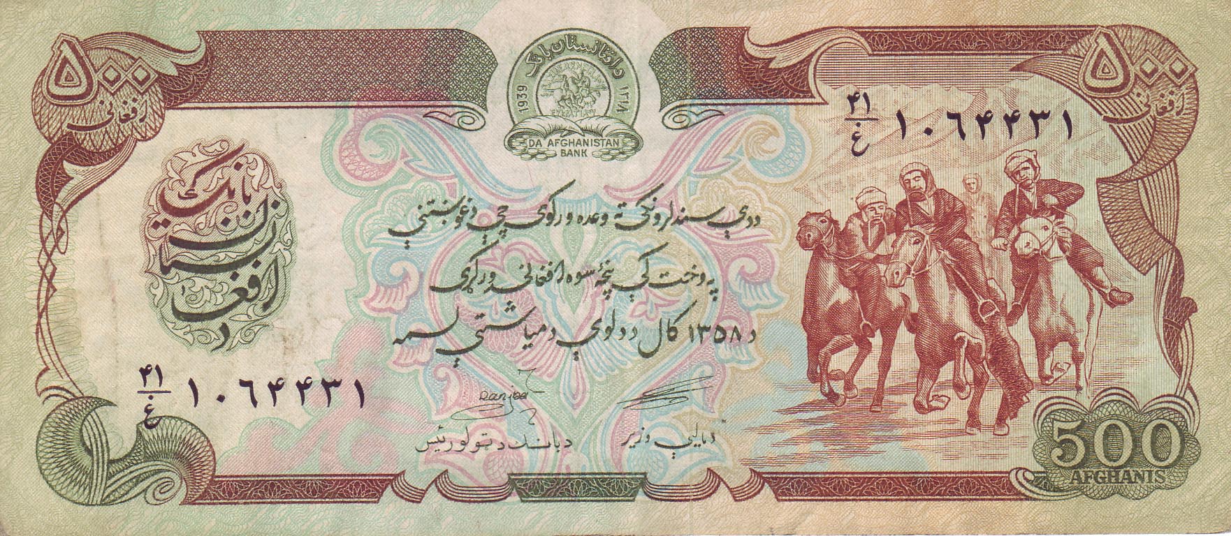 ![]() 500 Afghani (vordere Seite) Motiv: Buzkahi (Ziegenziehen-Pferde-Wettreiten) |