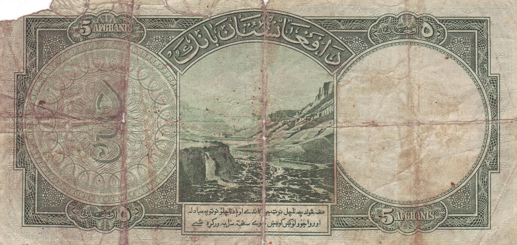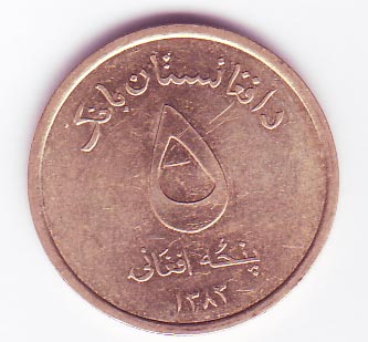 ![]() 5 Afghani (vordere Seite) Motiv: Wappen der Afghanistan-Bank |