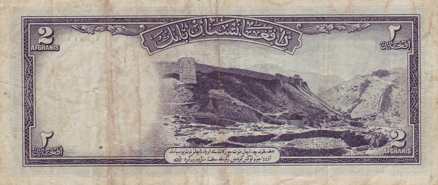 ![]() 2 Afghani (Rückseiteeite) Motiv: Qala-i-Jangi, Mazar-i-Sharif |